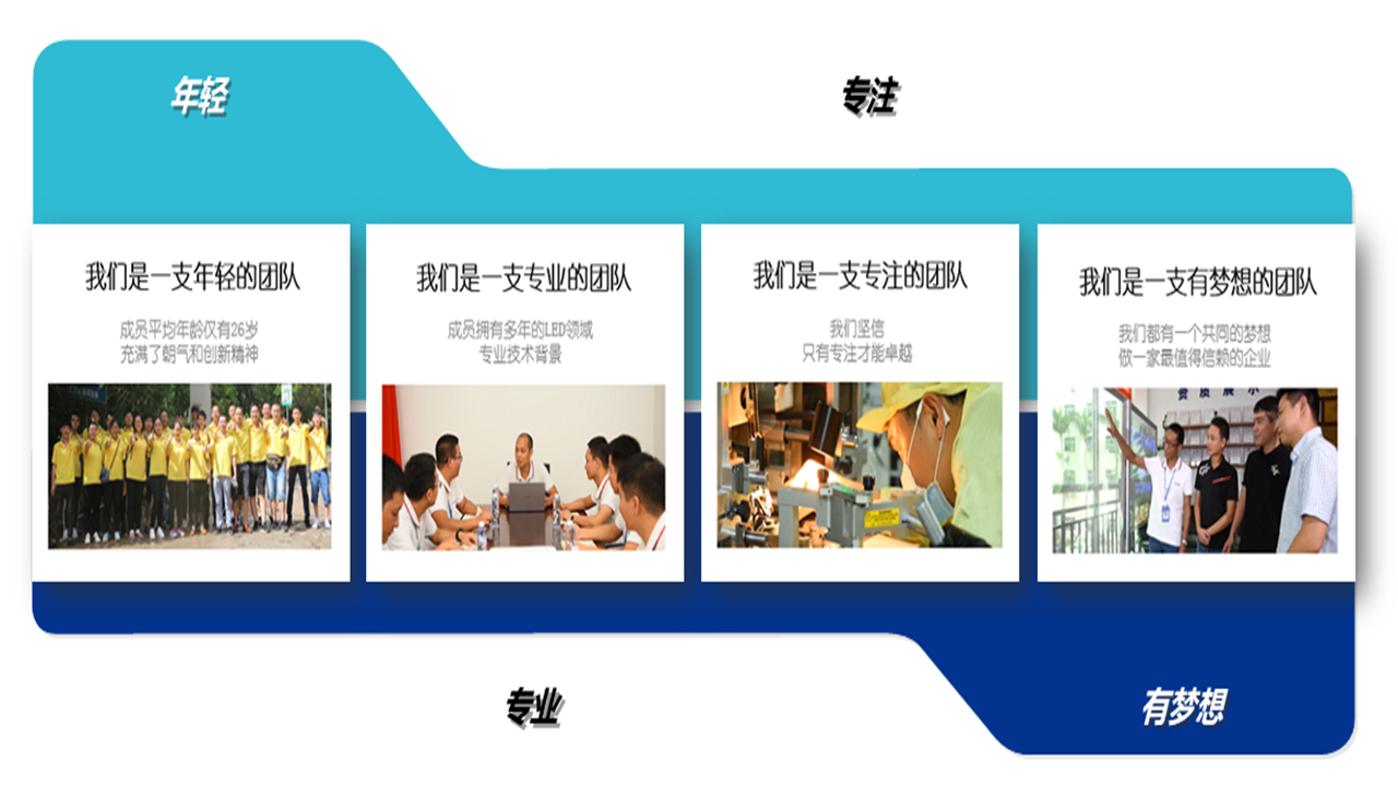 1998-2003,公司创始人涉足LED领域,先后就职于台资、港资、内资LED器件厂商,涉及仓储、生产、品质、工程、研发等。