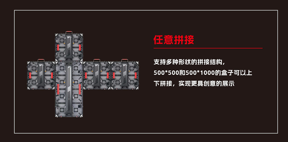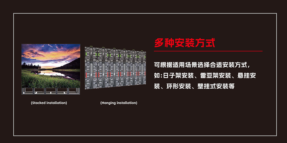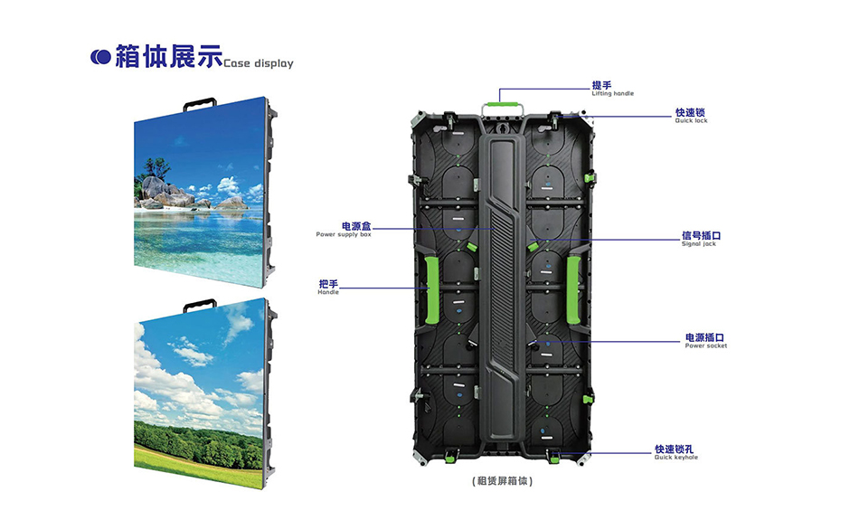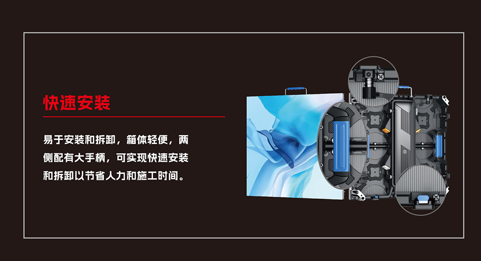 LED租赁屏(LED screen rental)是一款用于舞台演出、文艺活动、展会活动等便于快速拆装LED显示屏。屏体轻薄,节省空间,可任意方向,尺寸的造型拼凑,呈现出各种需要的视觉效果,箱体采用压铸铝成型,强度高,韧性强,精度高,不易变形,省心省力。