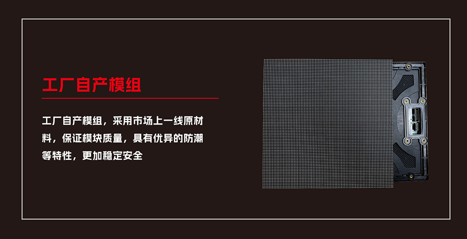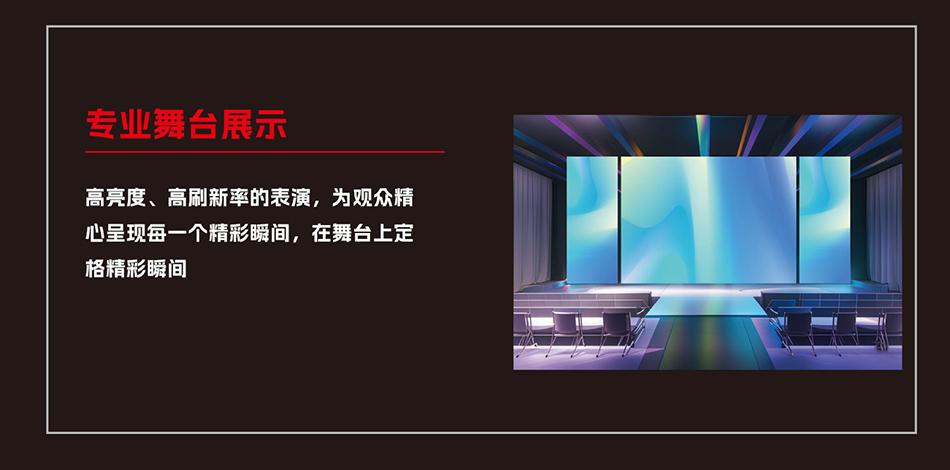 演唱会、企业年会、会议系统、会展、酒店等应用场所使用,公司引进了先进的智能生产设备和行业内先进的模块生产线。公司的现代技术引领了LED显示行业的发展。公司的专业能力处于LED行业的前沿..